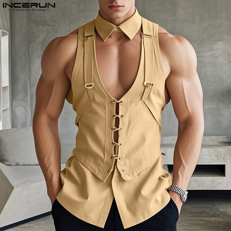 Product Description:Men’s solid color sleeveless tops.